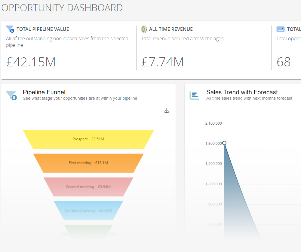 Manage your sales through an easy-to-use list one by one, alternatively watch them flow through your pipeline with the board view filling out required fields when the stage changes.